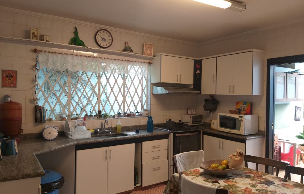 – Uma ampla cozinha com móveis planejados e piso de cerâmica e portas panorâmicas para o quintal;